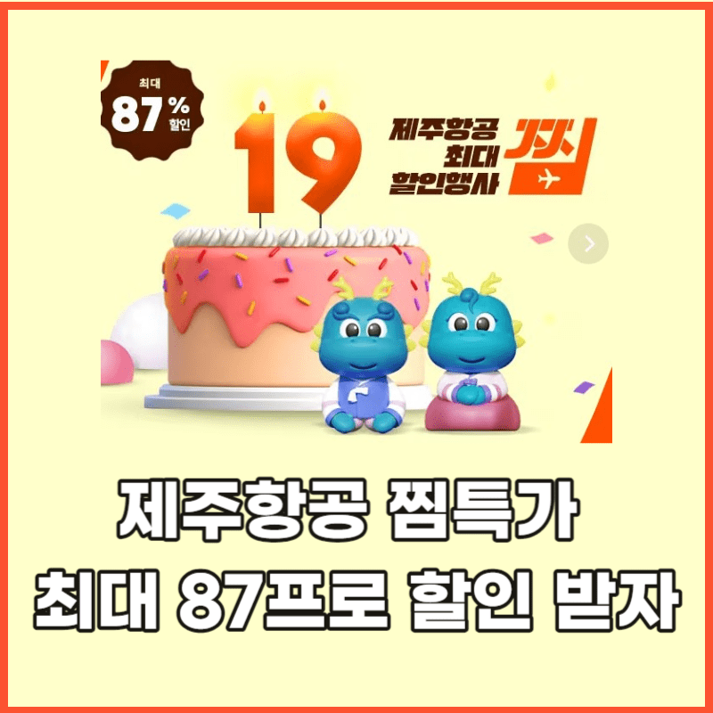 2024년 1월 9일부터 제주항공 19주년 기념 이벤트인 찜특가가 진행이 됩니다. 최대 87프로 할인이 적용이 되는 초특가 항공권 구입과 다양한 추가 할인혜택, 이벤트를 놓치지 마세요